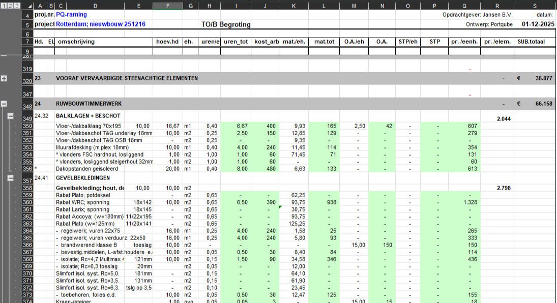 Zoals gezegd verdient een project een stevige financiele basis en loopt als rode draad door het gehele project.Een bouwkostenbegroting vanuit ons geeft u helder en betrouwbaar inzicht in de financiële haalbaarheid van uw project. Ik ben gespecialiseerd in het opstellen en beoordelen van begrotingen binnen de bouw en aanverwante sectoren.Van de eerste planfase tot en met realisatie weet u waar u financieel aan toe bent. Zo voorkomt u verrassingen achteraf en legt u een stevige basis voor een beheersbaar en succesvol project.
